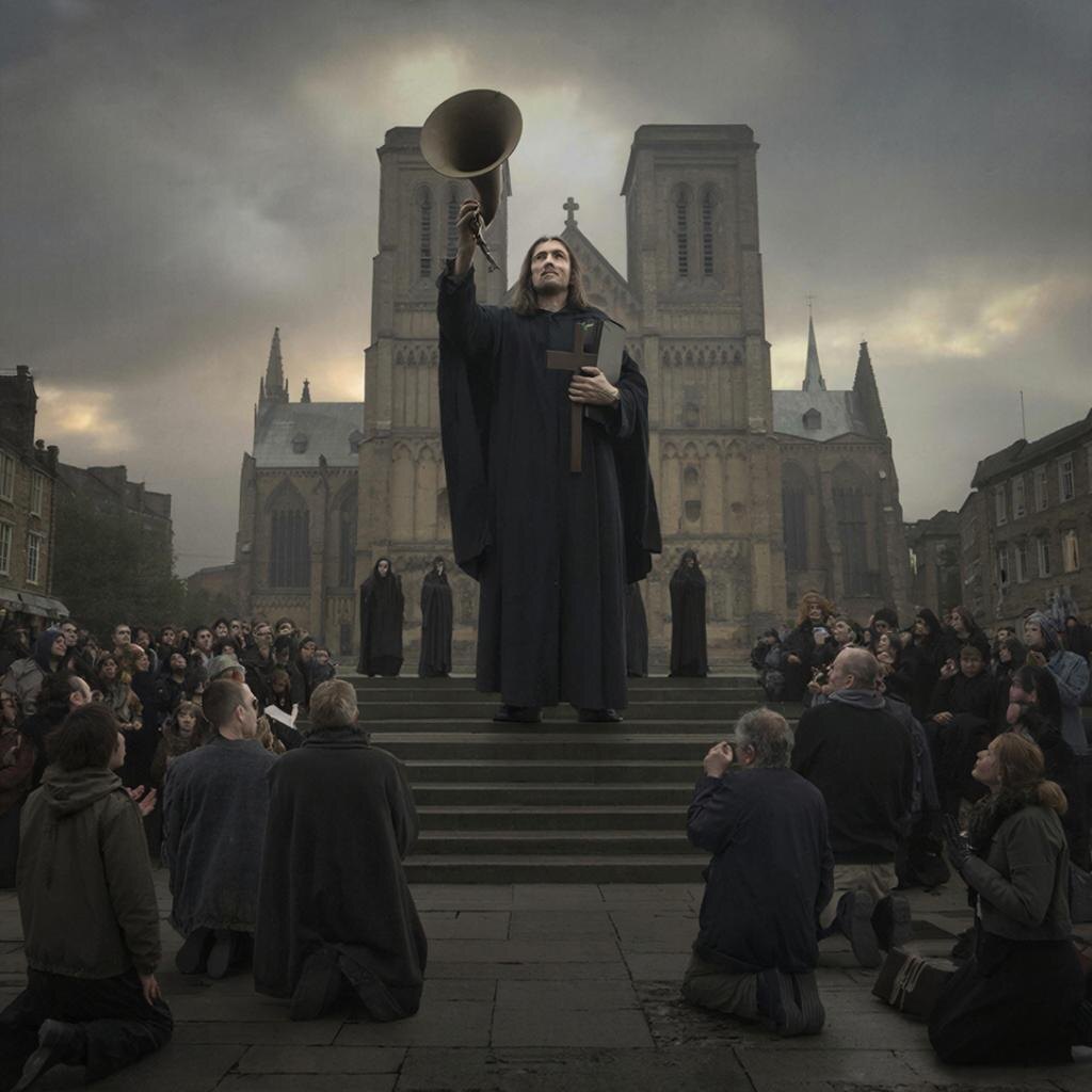 Он вышел из тени собора, и толпа замерла. Брат Майкл. Отец Майкл. Пастырь. Высокий, сутулый, с глазами, которые не моргали. Он никогда не повышал голос — в этом была его сила. Люди вслушивались в его шёпот, как в последнее откровение.