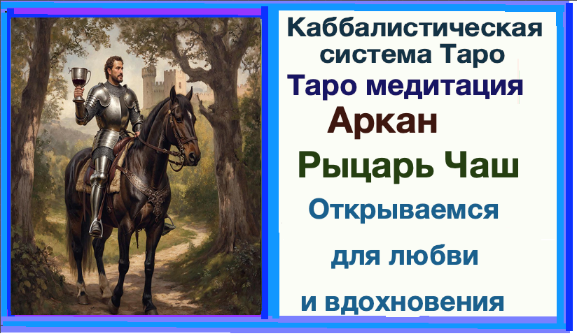 Подготовка: 1. Найдите тихое и спокойное место, где вас никто не побеспокоит. Убедитесь, что вам удобно: можете сесть в позе с прямой спиной или лечь. 2. Закройте глаза и сделайте несколько глубоких вдохов, постепенно расслабляя все части своего тела. Шаг 1: Настройка на Рыцаря Чаш Представьте себе образ Рыцаря Чаш. Визуализируйте его в доспехах с кубком в руках. Почувствуйте его энергетику — это энергия любви, вдохновения и чувствительности. С каждым вдохом вдыхайте эту энергетику, представляя, как она наполняет вас. Шаг 2: Вход в энергетическое пространство Сделайте глубокий вдох и в своём воображении представьте, как вы входите в светлое пространство, наполненное тёплыми цветами — голубым, розовым и золотым. Это мир Рыцаря Чаш, где царит гармония и эмоциональное богатство. Позвольте себе погрузиться в это пространство и ощутить его покой. Шаг 3: Открытие сердца Представьте, как ваше сердце наполняется светом. Этот свет мягкий и теплый, словно солнечные лучи. Почувствуйте, как ваше