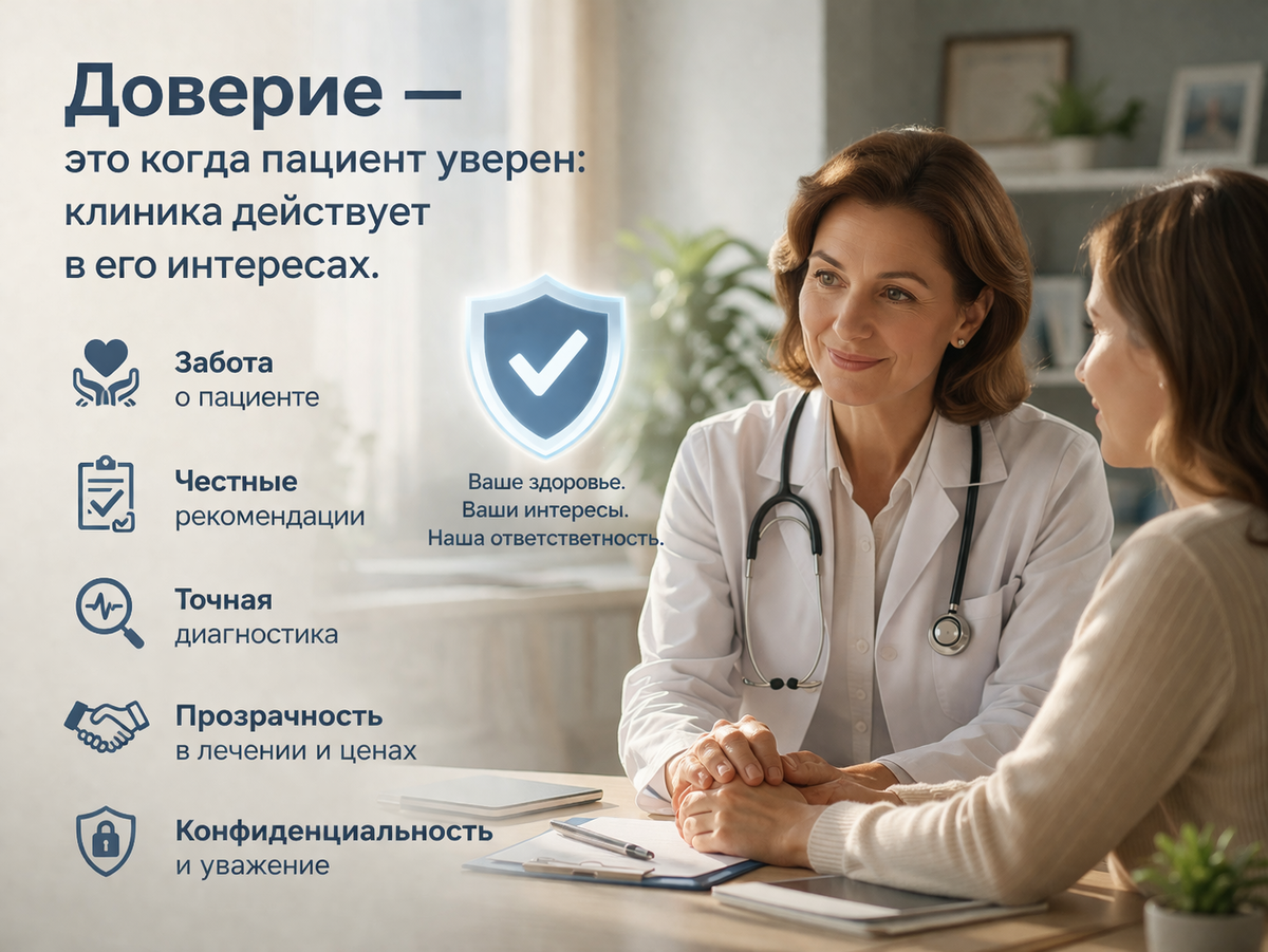 Гораздо чаще он уходит с другой мыслью: «На мне пытались заработать, а не помочь». Именно в этот момент клиника теряет не просто одного человека. Она теряет доверие. А в медицине это самый дорогой актив. Доверие — это не красивый сайт, не дорогой ремонт и не вежливая улыбка администратора. Доверие — это когда пациент уверен: клиника действует в его интересах. Не пытается быстрее избавиться, не уводит в ненужные услуги, не играет в “бесплатно”, чтобы потом продать больше, не отмахивается от проблемы, как это часто чувствуется в перегруженной системе, где врачу некогда, записи нет, а на обследование еще нужно пробиться. Именно поэтому люди идут в частную медицину. Не только за комфортом. Они идут туда за другим отношением. За тем, чтобы их выслушали. Чтобы не боялись разбираться. Чтобы не экономили на диагностике там, где она действительно нужна. Чтобы врач не делал вид, что проблемы нет, лишь бы не назначать “лишние” ис