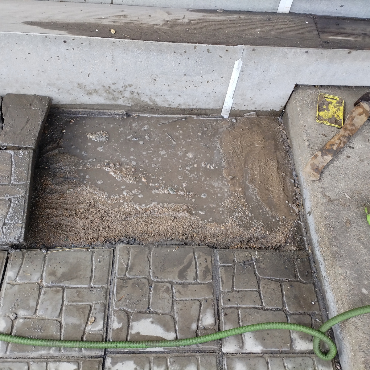 Плитка сикось на кось, часть провалилась и в этом месте стояла лужа...