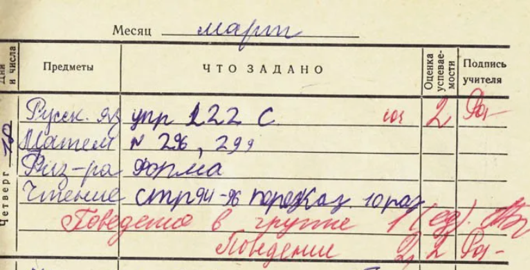 В последнее время в СМИ началось обсуждение вопроса о введении оценок за поведение учащимся в школе. В советское время, когда существовали бумажные дневники, в конце каждой четверти, действительно, ставили такие оценки. Возвращение к «забытому старому» дало повод поговорить об оценках и отметках в системе образования в Российской империи и в Советской России.