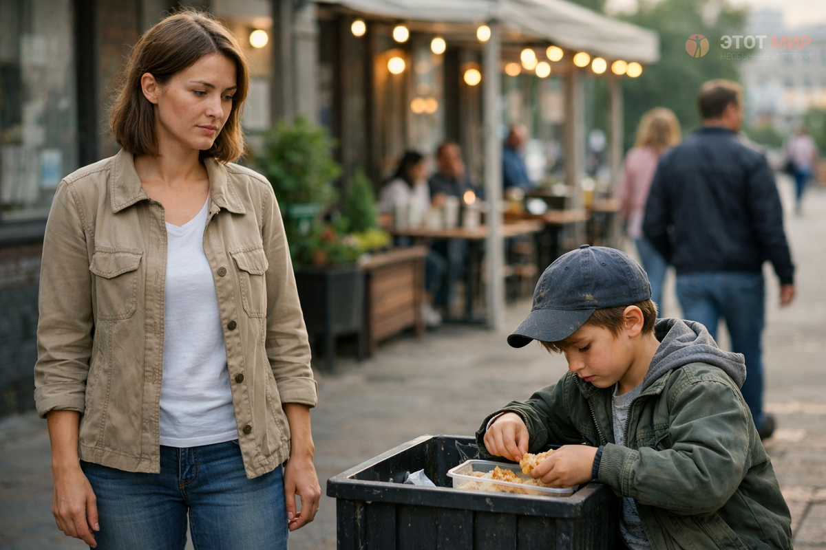 Он ел из мусора, и никто его не замечал. Люди спокойно ели, разговаривали, проходили мимо, как будто его не существовало.