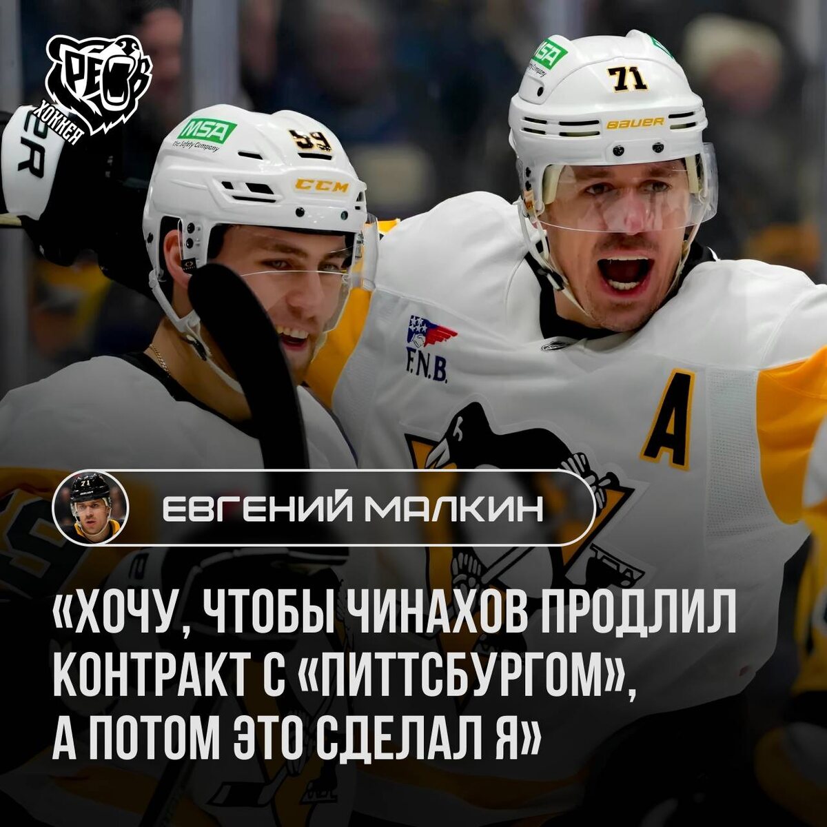 Евгений Малкин, поделился впечатлениями от игры российского форварда Егора Чинахова, который перешёл в команду из «Коламбус Блю Джекетс» по ходу сезона. За 39 матчей в составе «пингвинов» 25‑летний игрок набрал 31 очко (17+14). Вот что сказал Малкин: «Он играл со мной, а теперь выходит в одном звене с Кросби. Я рад за молодого парня, мы видим его прогресс от матча к матчу. В „Коламбусе“ у него был тяжёлый старт карьеры, и здесь важна уверенность в себе. Он начал играть во втором звене и в большинстве, забил пару голов, а сейчас великолепно проводит каждую игру. Мне кажется, нашему тренеру тоже нравится Егор, он даёт ему много игрового времени. Хочу, чтобы он продлил контракт с „Питтсбургом“, а потом это сделал я» А что думаете вы? Верите, что Егор Чинахов закрепится в основном составе «Питтсбурга» и продлит контракт с клубом? 🐻 Слышишь? ЭТО РЁВ ХОККЕЯ