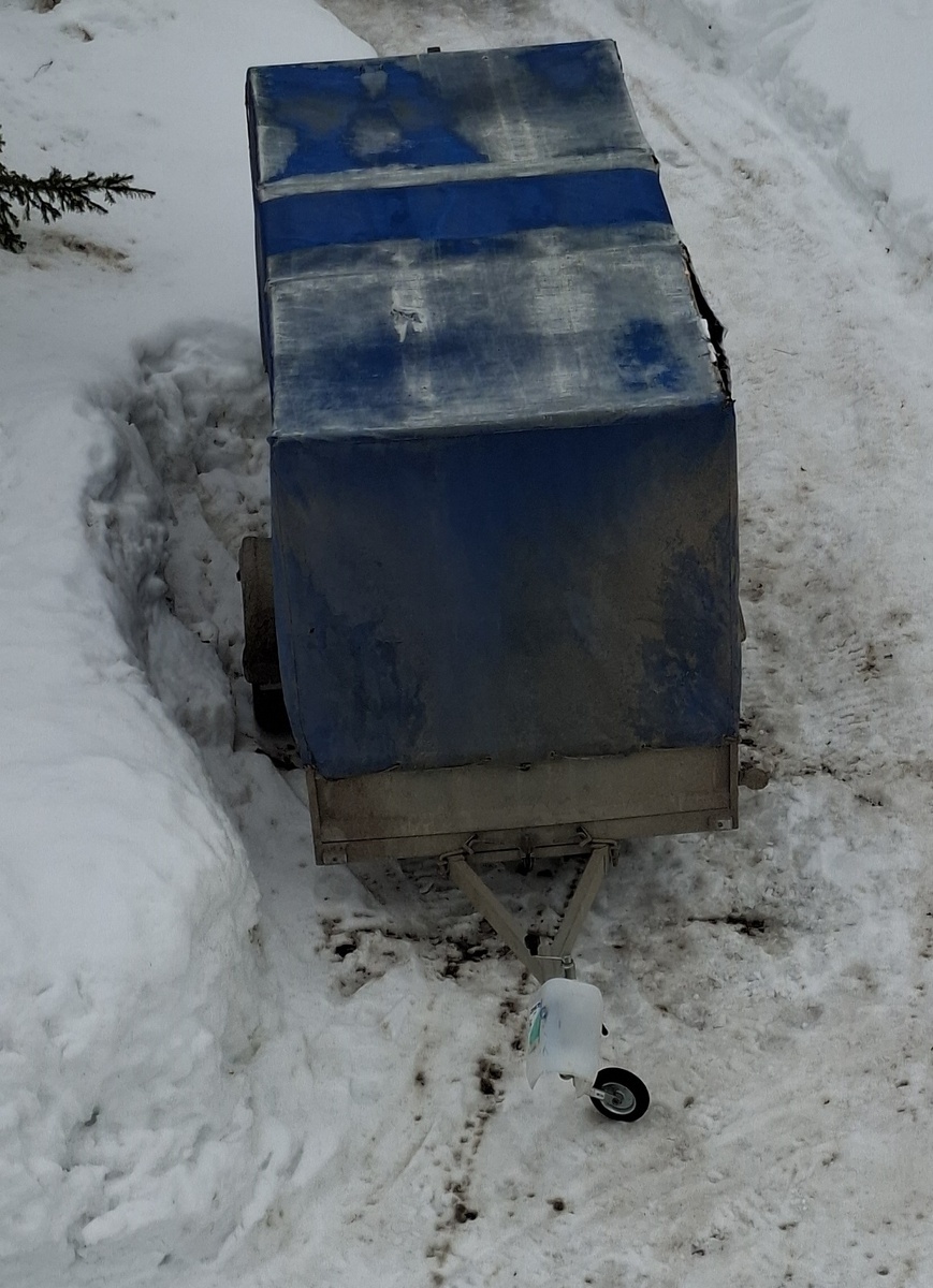 Укрепление крыши в виде листа ОСП и стоек такелажными ремнями продержалось всего пару лет (статья тут). Прошлая снежная зима поспособствовала быстрому превращению тента в совсем дырявую тряпку. Лист ОСП, прикрученый прессшайбами к верхним деревянным планкам, спасал он провисания тента от осадков и способствовал лёгкой чистке снега с крыши, но добавлял "болтанки" при движении по неровностям. К тому-же сильно разбух от влаги и прессшайбы в нём уже не держались. Этой весной купили новый тент согласно модели прицепа: Но просто заменить его не получилось: новый оказался рассчитан на более высокий каркас: люверсы оказались сильно ниже бобышек: Решил не ограничиваться только наращиванием стоек, а сделать небольшую доработку, чтобы тент не перетирался в углах и у стоек. Стойки пришлось наращивать на 14 сантиметров снизу. В паз борта они входят на 30 см. Просто подложить кусок такой-же-профтрубы под стойку без надёжной фиксации я не решился. Просто приварить мне тоже показалось мало, т.к.