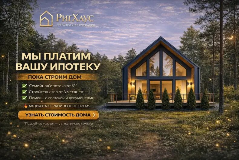 Уникальное предложение от РигХаус: вы уже взяли ипотеку на строительство дома, а мы берём на себя ваши ежемесячные платежи на весь период строительства. Как это работает: ✅ Семейная ипотека от 6% — работаем с лучшими банками ✅ Строительство от 3 месяцев — каркасный дом под ключ за реальные сроки ✅ Помощь с ипотекой и документами — сопровождаем на всех этапах: от подготовки документов до регистрации дома Главное преимущество акции: Пока мы строим ваш дом, РигХаус платит ваши ежемесячные платежи по ипотеке. Вы экономите сотни тысяч рублей и спокойно наблюдаете за строительством. 🔥 Акция на ограниченное время! Можно и в отпуск съездить, и дом построить! 🏠🌴 📌 Остались вопросы или хотите обсудить свой проект? Свяжитесь с нашим менеджером: +7 905 038 7329 — Евгений