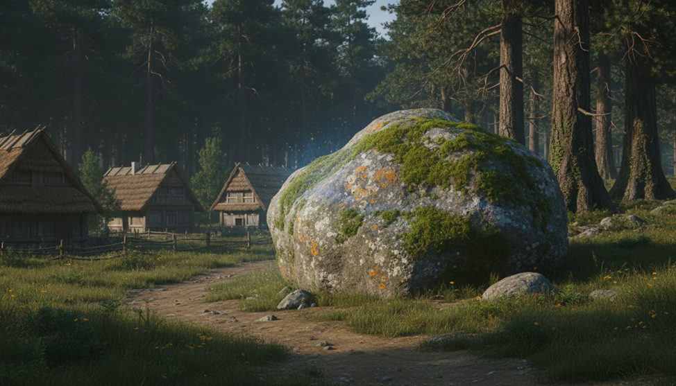 На краю деревни, у самой кромки старого леса, лежал Певчий Камень. Он не был ни огромным, ни красивым - просто большой, серый валун, покрытый мхом и лишайниками. Но раз в году, в самую короткую ночь летнего солнцестояния, с ним происходило чудо. Как только последний луч солнца уступал место звёздам, Камень начинал петь. Звук рождался не снаружи, а будто из самой его глубины. Это не была песня со словами. Это был голос самой земли: низкий, вибрирующий гул, в котором слышались шум подземных рек, скрип древних корней, шелест ушедших листьев и тихий звон далёких звёзд. Этот «голос» не слышали ушами - его чувствовали кожей, самым сердцем. Он наполнял всё вокруг, и казалось, что поёт не камень, а сама ночь. И каждый год к Камню приходили люди с одним и тем же вопросом. Они приносили ему дары: самые спелые ягоды, душистый хлеб, ленты. Они садились вокруг, слушали его древнюю песнь и спрашивали шёпотом: - О чём ты поёшь, Камень? В чём твоя загадка? Открой нам смысл! Но Камень лишь продолжал св