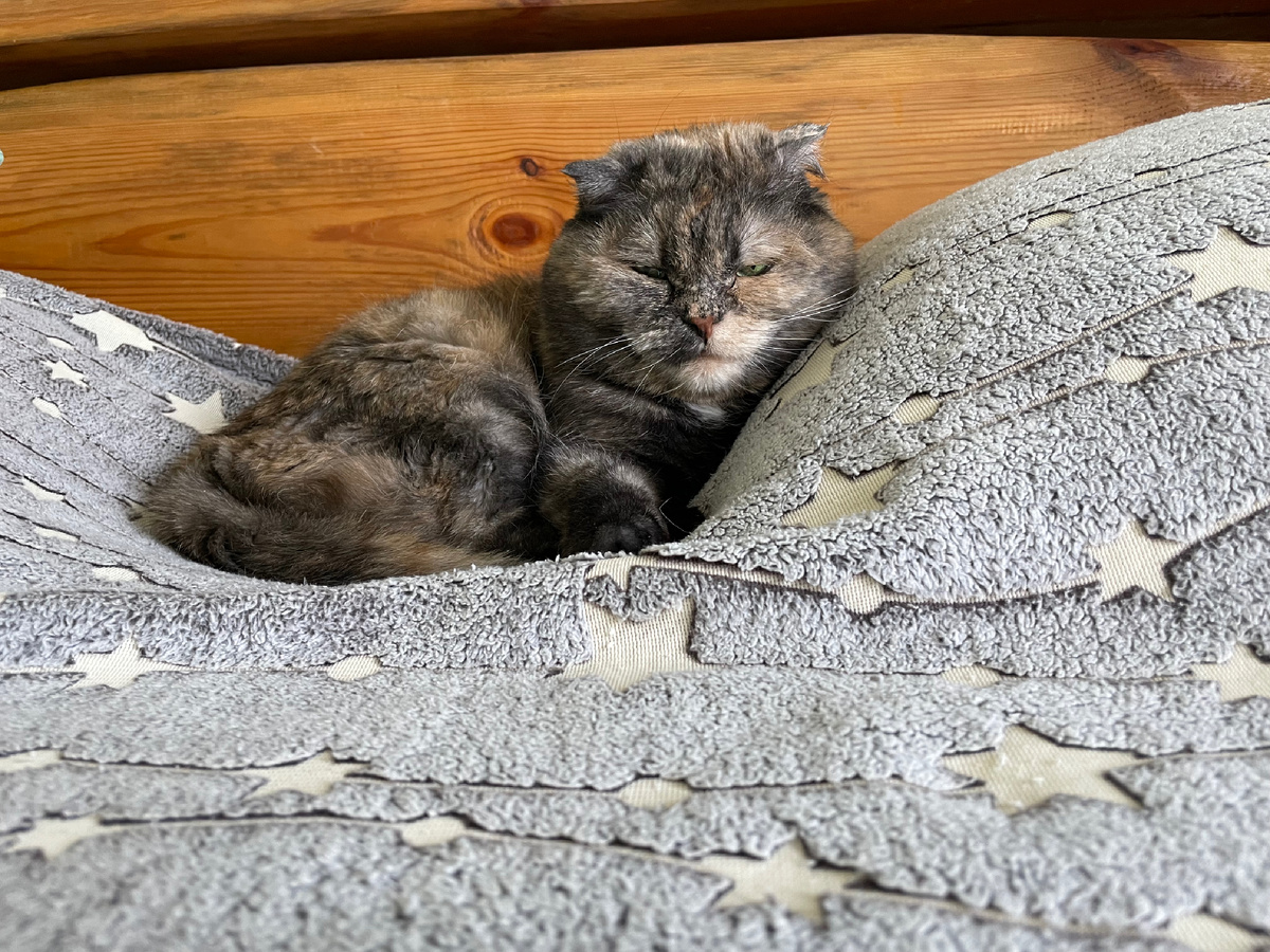 - Иногда кошка перебирается на подушку, под одеяло или даже к другому члену семьи, если там теплее.