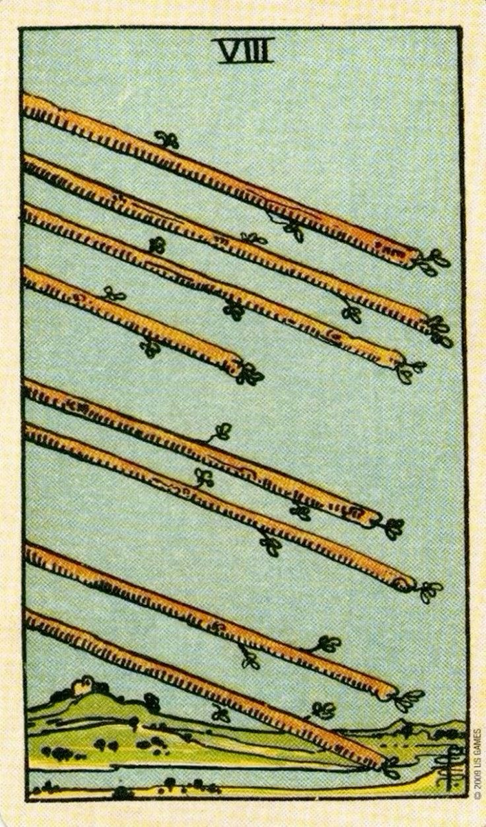 Я сегодня хочу поговорить о Восьмёрке Жезлов из колоды Райдера–Уэйта–Смита.