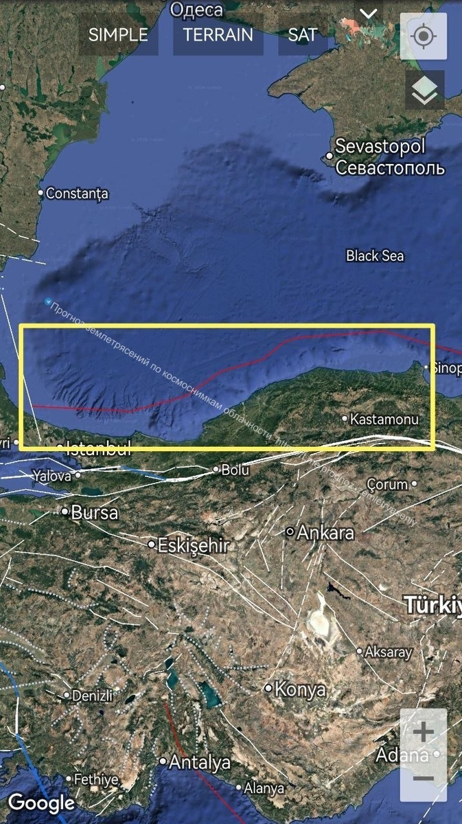 Есть вероятность землетрясения М5-6+ по северо-западной Турции со стороны Черного моря в течение 9 дней.