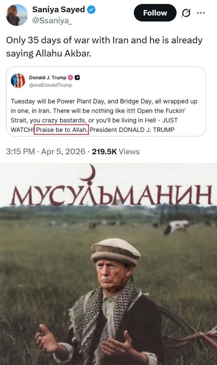 Всего 35-й день войны с Ираном, а он на католическую Пасху, вместо "Христос воскресе" говорит «Аллах Акбар!»