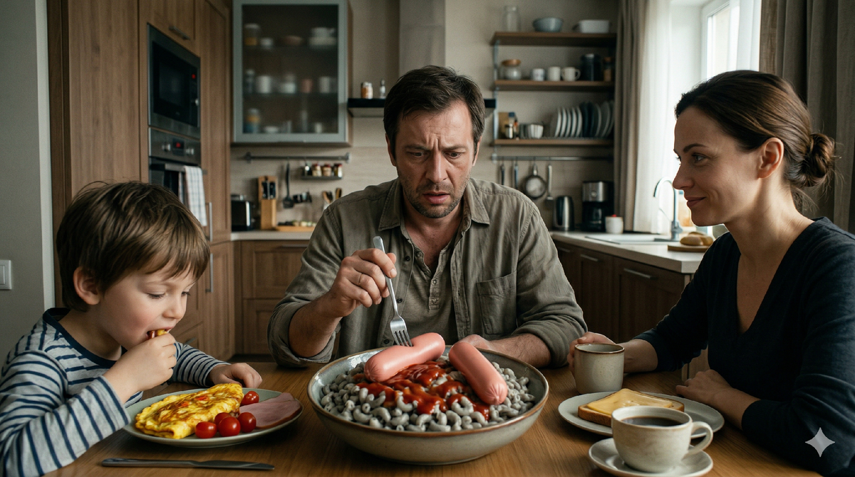— Это твой завтрак, милый, — я улыбнулась ему самой лучезарной, доброй улыбкой. — Ты же просил оптимизировать расходы! Я вчера прочитала потрясающую статью про то, как экономить на питании. Оказывается, мы и правда слишком много тратили на "пищевой мусор". Вот эти сосиски стоят всего девяносто рублей за килограмм! А макароны вообще копейки. Представляешь, сколько мы теперь сможем откладывать на наш дом? Я решила, что ты был абсолютно прав!