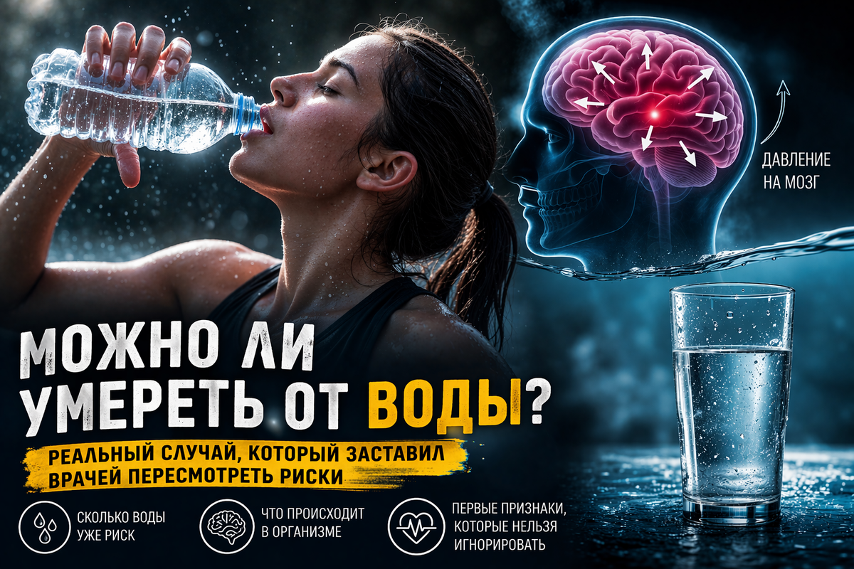 Кажется, что вода — самое безопасное, что может быть. Нам постоянно говорят: пей больше, это полезно. Но есть предел, за которым даже вода становится опасной. И да — в редких случаях человек действительно может умереть, если выпьет слишком много воды за короткое время. Такое состояние называется водная интоксикация (или гипонатриемия). Суть в том, что при избытке воды в организме разбавляется уровень натрия в крови. Натрий — один из ключевых элементов, который отвечает за работу нервной системы и баланс жидкости в клетках. Когда его концентрация резко падает, клетки начинают «набухать». Особенно опасно это для мозга. Череп — замкнутое пространство, и увеличившийся в объёме мозг начинает испытывать давление. Это может привести к судорогам, потере сознания и в тяжёлых случаях — к смерти. Один из самых известных эпизодов произошёл в США в 2007 году. Во время радиоконкурса участникам предложили выпить как можно больше воды, не посещая туалет. Победитель получал игровую консоль. 28-летняя