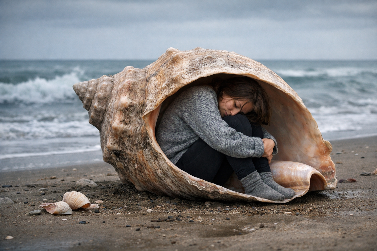 У меня нет режима «отвлечься». У меня есть режим «залезть в ракушку и тихо портить себе жизнь» Недавно снова это заметила. Как только в жизни начинается хоть что-то неприятное, я не становлюсь собранной женщиной из вдохновляющих видео. Ну, знаете, вот этой, которая наливает себе чай, дышит животом, идёт на йогу и говорит: «Я выбираю не тревожиться». Нет. Я выбираю старое доброе исчезновение. Снаружи всё выглядит даже прилично. Я могу отвечать на сообщения. Могу работать. Могу шутить. Могу в какой-то момент даже накраситься, чтобы совсем никто ничего не понял. А внутри уже всё. Внутри я заползла в ракушку и сижу там с лицом человека, который мысленно прожил 14 плохих сценариев, 3 позора и одну катастрофу, которой вообще ещё не было. И больше всего меня бесит совет: «Да отвлекись ты». Обожаю. Просто обожаю. То есть у меня в голове тревога уже распаковала чемоданы, развесила вещи по шкафам и варит на кухне кофе, а я должна такая: «Ой, и правда, включу комедию». Да? Серьёзно? Я пробовала о