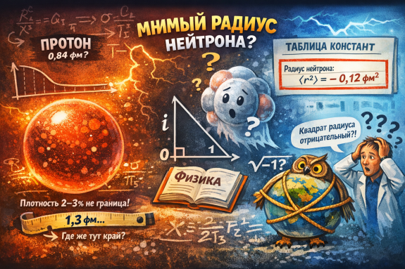 Если вы откроете любой учебник по ядерной физике, то с высокой вероятностью наткнётесь на утверждение: «Зарядовый радиус протона составляет примерно 0,84 фемтометра, а квадрат радиуса нейтрона - около –0,12 фм² (отрицательный квадрат радиуса)». Человек с бытовым понятием «радиус» (ну, знаете, половина диаметра круга) испытывает лёгкий когнитивный диссонанс. А зря - потому что здесь начинается одна из самых изящных подмен понятий в современной науке.