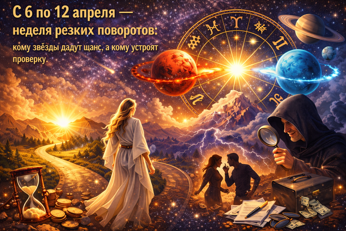 Неделя с 6 по 12 апреля 2026 года будет ощущаться как переломная. События могут разворачиваться быстро, настроение - меняться резко, а многие решения окажутся важнее, чем покажется в моменте. Главный фон недели задаёт сходящееся соединение Марса с Нептуном: оно усиливает тревожность, путаницу, скрытые мотивы, но одновременно обостряет интуицию и заставляет почувствовать, где правда, а где иллюзия.