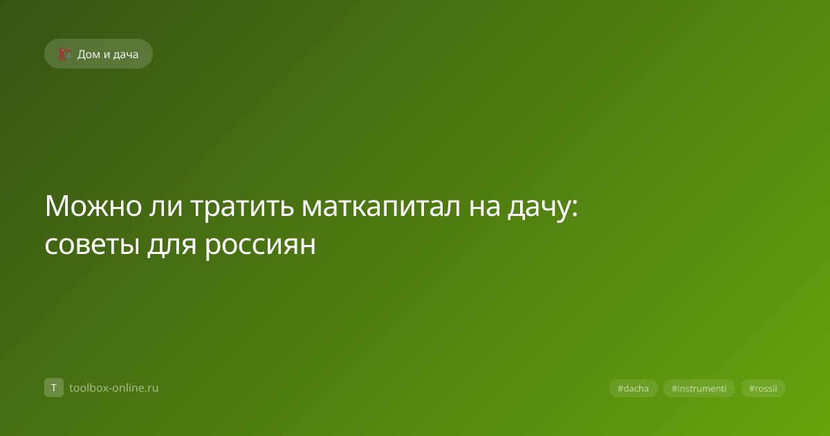 Чтобы потратить маткапитал на дачу, вам нужно будет изучить несколько советов для россиян. Если вы планируете потратить маткапитал на дачу, обязательно ознакомьтесь с нашими инструментами на toolbox-online.ru. Наши инструменты для дачных работ безопасны и качественны.