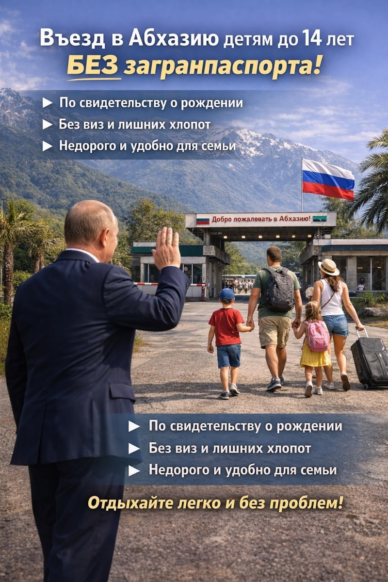 Хорошая новость, которая реально влияет на выбор отдыха 👇 Владимир Путин продлил возможность въезда в Абхазию для детей до 14 лет без загранпаспорта — по обычному свидетельству о рождении. 📌 Что это значит на практике: — не нужно срочно оформлять загран ребёнку — меньше затрат и нервов перед поездкой — быстрее принимается решение «поехать или нет» А теперь честно: именно такие детали часто решают — едет семья отдыхать или откладывает поездку. 💡 Абхазия в этом сезоне — это: — море без виз и сложностей — понятный бюджет — формат «сел и поехал» И да, поток туристов туда в 2026–2027 будет только расти. А значит — лучшие отели и варианты разбираются быстрее. 👉 Если рассматриваете Абхазию на лето — напишите мне в личные, подберу варианты под вашу задачу (семья, бюджет, уровень комфорта) Без лишней суеты — сразу по делу. Если планировали — самое время зафиксировать условия ✈️ 👉 Напишите Ваш ЗАПРОС 📲 +79293970747 📍Подписывайтесь на канал АТЛАС чтобы раньше других знать больш