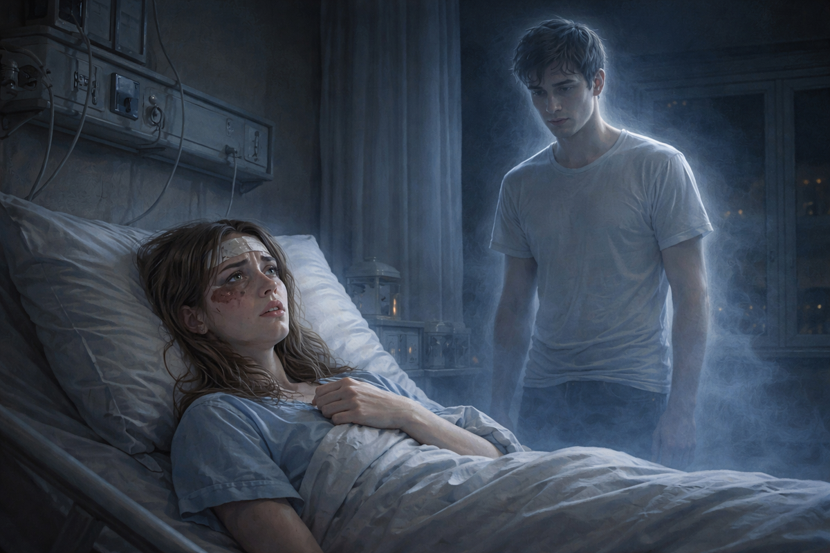 Юля открыла глаза и увидела его. Саша стоял у двери. Он был в той же одежде: мятая футболка, джинсы, кроссовки, в которых он уехал из дома утром. Лицо его выглядело... нормально. Никаких ран, крови. Просто Саша. Но что-то было не так.