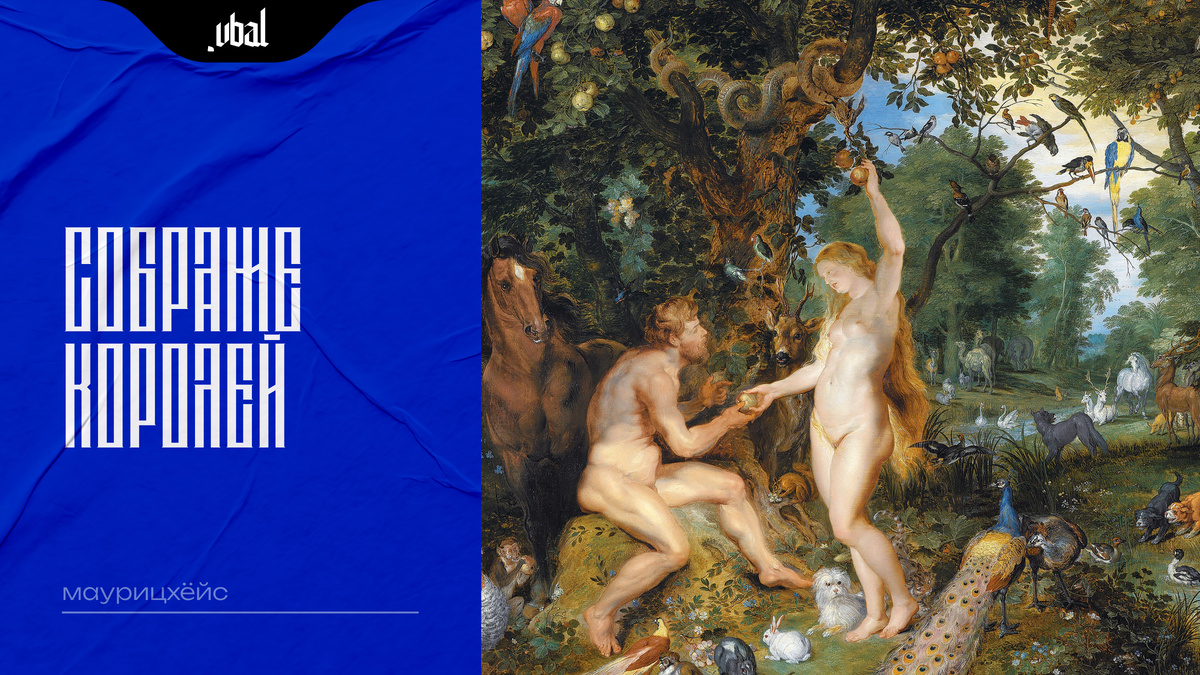 В каждом разделе есть предметы особой гордости. Например, историческая живопись. Здесь нет историй в научном смысле, зато много библейских и античных сюжетов. Библейские сцены скорее нравоучительны, чем религиозны. Одна из таких — сцена грехопадения в раю: Адам и Ева, застигнутые своей наготой, в окружении райской природы и животных. Эту работу создали вместе два художника: Ян Брейгель из знаменитой династии и Питер Пауль Рубенс.