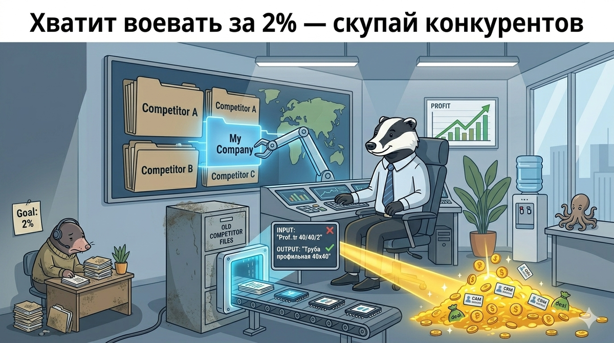 Хватит воевать за 2% рынка. Почему скупать конкурентов дешевле, чем нанимать новых продажников.