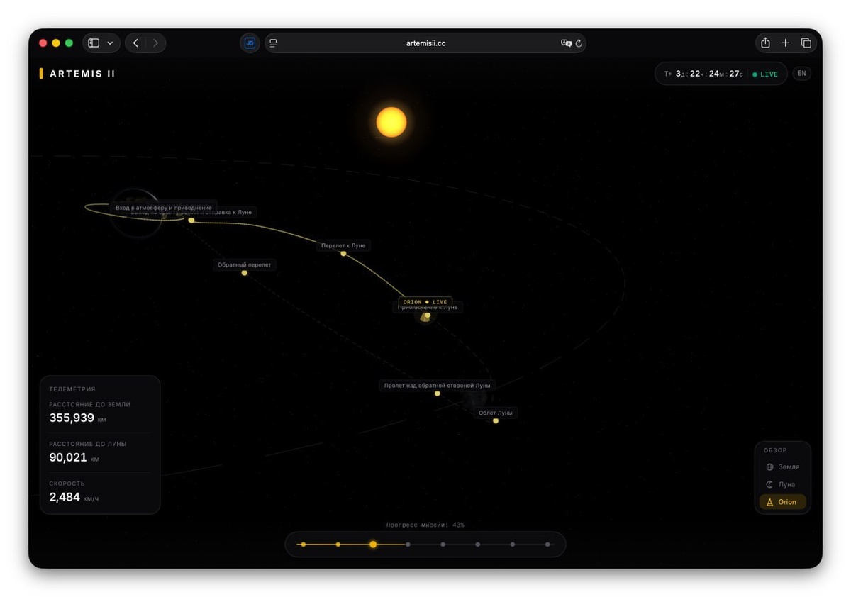Следите за полетом к Луне в прямом эфире! Мы разработали сайт для наблюдения за миссией Artemis II