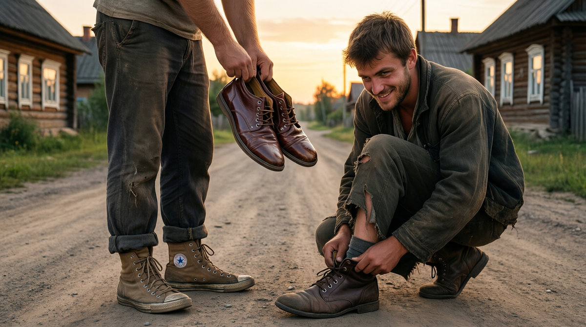 Как-то случай произошел. Собрались приятели в клуб на танцы. Ивану на тот момент как раз ботинки новые справили, а у Степки старые кирзачи только в наличии. Заартачился он, мол, не пойду позориться, вот у тебя боты какие, а я оборванец. Не хочу перед девчатами позориться. Иван, долго не думая, скинул ботинки и напялил старые сапожищи. Довольный Степка натянул скрипучую кожаную обувку и подумал: «Вот же Ванька дурак. Не зря ему имя такое дадено. Теперь Светланка точно со мной весь вечер танцевать будет, а потом, может, и проводить себя позволит».
