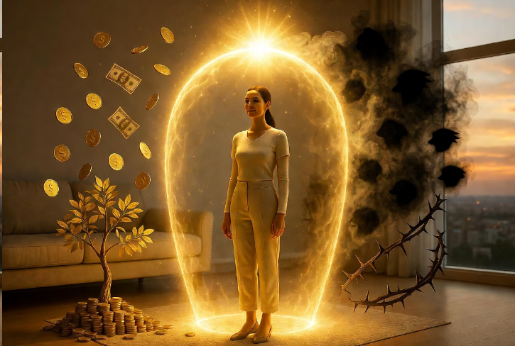 Защита от зависти. Визуально: я представляю, что вокруг меня прозрачный купол. Чужие слова не проникают внутрь, если я их не впускаю. Звучит странно, но работает как психологическая техника — ты перестаёшь принимать на свой счёт всё, что говорят.