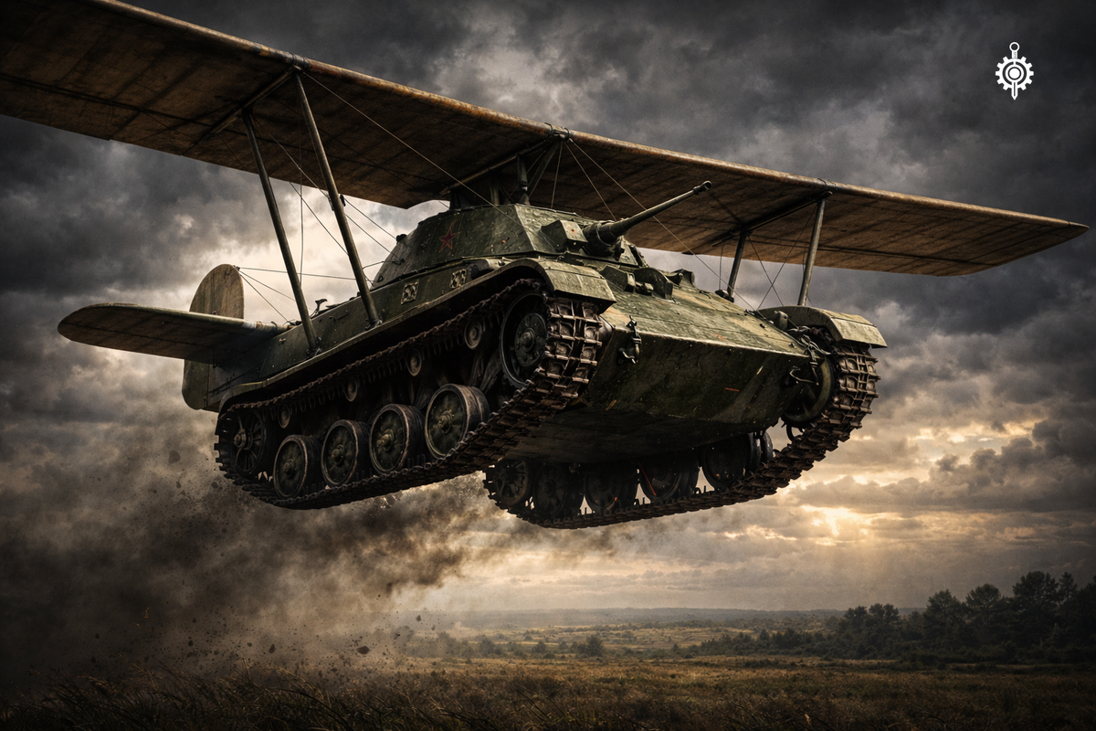 Летающий танк провалился не потому, что его придумали безумцы. Он провалился потому, что война 1942 года не располагала техническими средствами для его применения. Идея была реальной — её время ещё не пришло. А когда пришло, нужда в ней уже отпала.