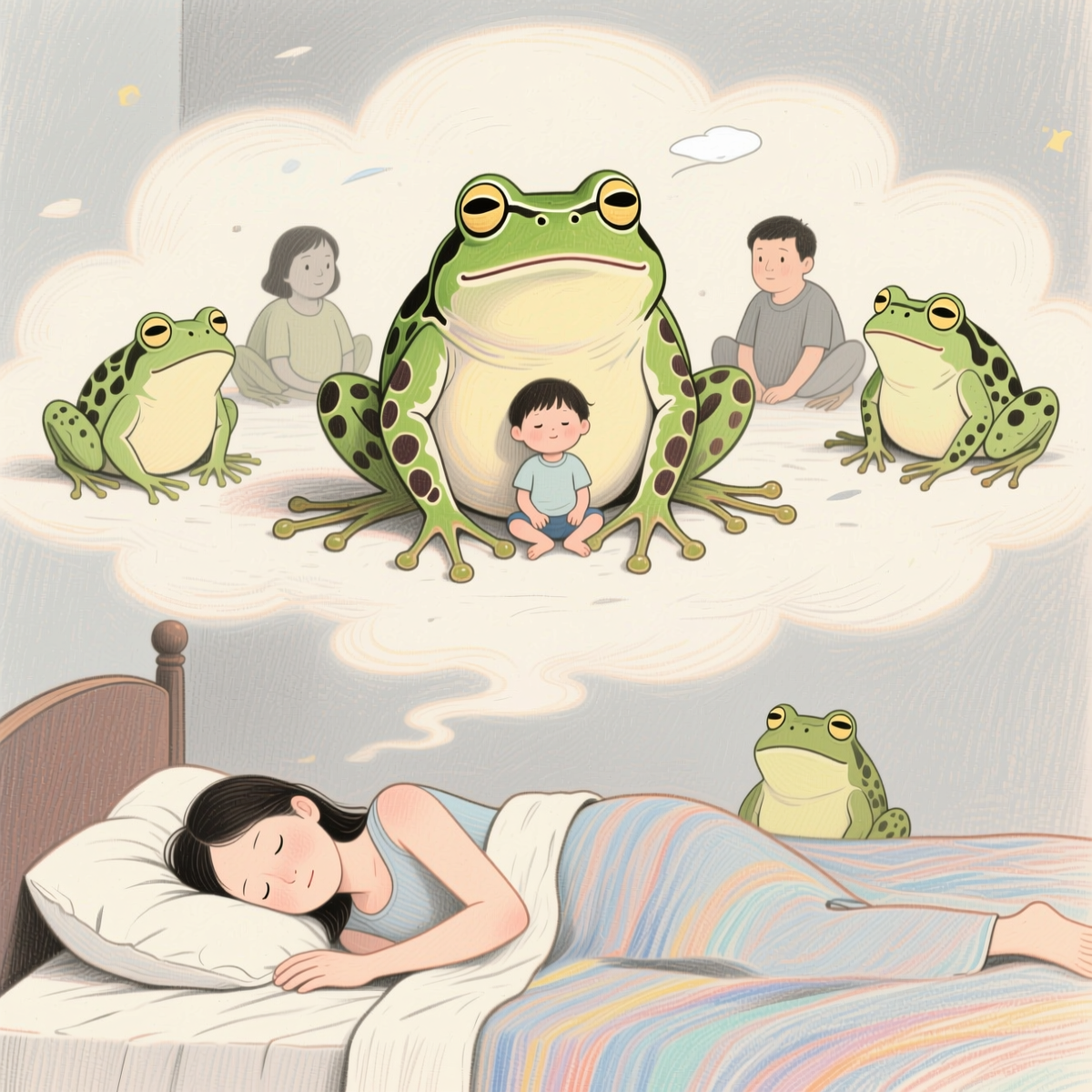😴 К чему снится лягушка с лицом человека? Наталья описывает свой сон так: Здравствуйте. Мне сегодня приснились большие лягушки с лицами людей. Посередине была лягушка с лицом ребенка и постоянно прыгала на месте вверх, а вокруг сидели лягушки с лицами взрослых. 🤔 Что же значит этот сон? Кстати, вы тоже можете прислать свой сон для трактования нашему боту в телеграмм — https://t.me/ReceiverDream_bot В данном сне есть несколько ключевых символов: большие лягушки с лицами людей, и лягушка с лицом ребенка. 🐸 Лягушки в сновидениях часто ассоциируются с духом похоти, нечистоты и нечестия. В Библии они упоминаются как символ наказания и нечистоты, как это было в египетских казнях. Лягушки могут указывать на наличие духовных препятствий или искушений, которые требуют внимания и очищения. 👶 Лицо ребенка может символизировать невинность, новое начало или нереализованный потенциал. Это говорит о новых проектах или аспектах вашей жизни, которые требуют заботы и внимания, чтобы развиваться и ра