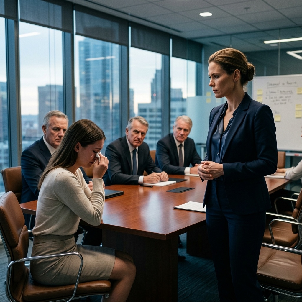Там сидели генеральный директор, багровый от ярости, бледный Илья Сергеевич, два чопорных британских аудитора и... Алина. Она сидела с заплаканным лицом, теребя платочек.