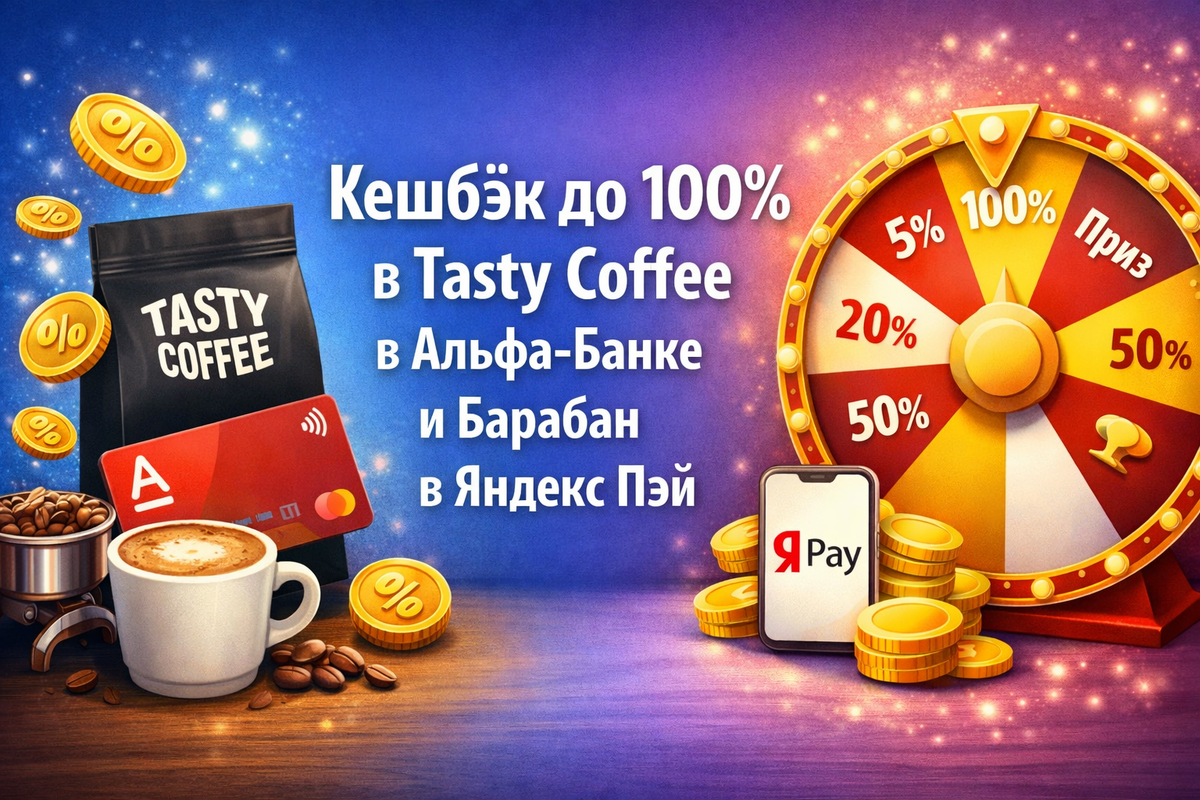 🅰️ Альфа-Банк: кешбэк до 100% в Tasty Coffee 📍 В Альфа-Банке сейчас идёт акция до 100% кешбэка за покупку в Tasty Coffee ✅ Мне выпало 30% кешбэка (макс. 600₽) ❓Что нужно сделать: 1️⃣ Зайти в приложение Альфа-Банка → раздел «Альфа-выгодно» на главной → или в поиске ввести «барабан» 2️⃣ С 06.04 по 12.04 оплачивать покупки от 2 000₽ в Tasty Coffee (на сайте или в приложении) 4️⃣ Платить можно любой картой Альфа-Банка (кроме Детской) 5️⃣ Кешбэк придёт 10.05 🎡 Барабан в Яндекс Пэй ⚡️ Крутим барабан в Яндекс Пэй. Мне выпало 5% кешбэка на «Цветы» Лимит: 500 баллов 🛍 Подходит для покупок: – в цветочных магазинах 💳 Оплата – по карте Пэй ⏳ Срок действия – до конца недели Всем профита🔥 Если было полезно – ставьте лайк и подписывайтесь👍🏻 Если было полезно – ставьте лайк и подписывайтесь👍🏻 Подобные разборы и обновления публикую в Telegram-канале и MAX👈 Если остались вопросы – пишите в комментариях, отвечу✍🏻