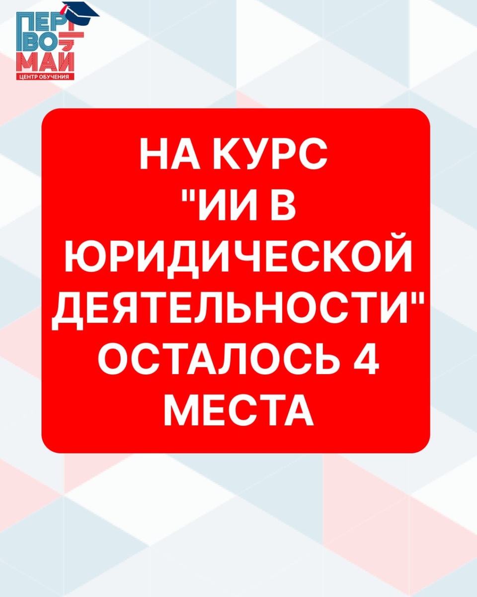 Старт: 15 апреля Группа ограничена: до 20 человек Осталось 4 места. Кто не успел — ждите следующий набор. КАК ПОПАСТЬ НА КУРС❓ ✨ ШАГ 1: ОТПРАВЬТЕ ДОКУМЕНТЫ Высылайте нам: → Паспортные данные (скан или фото разворота с фото и разворота с регистрацией) → ИНН → СНИЛС → Документ об образовании (диплом) 📩 Куда отправлять: edulex@1pervomay.ru 📞 Или пишите/звоните: +7 (343) 253-00-96 ✨ШАГ 2: МЫ ОБРАБАТЫВАЕМ ДОКУМЕНТЫ Готовим: → Договор на обучение → Согласие на обработку персональных данных → Заявление на зачисление Подписываем и зачисляем вас на курс. ✨ ШАГ 3: ОПЛАТА Направляем вам ссылку для оплаты. Стоимость: 30 000 ₽ или рассрочка на 12 месяцев ✨ ШАГ 4: ПОЛУЧАЕТЕ ОФИЦИАЛЬНЫЕ ДОКУМЕНТЫ После обучения выдаём: → Чек → Акт → Удостоверение о повышении квалификации государственного образца ЧТО ПОЛУЧИТЕ НА КУРСЕ: ✅ 16 академических часов практики ✅ 5 модулей от основ до внедрения ИИ ✅ Базу промптов (50+ готовых запросов) ✅ Чек-лист проверки галлюцинаций ИИ ✅ Удостоверение госу