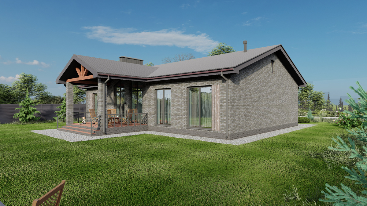 Проект "Каймары" одноэтажного дома площадью 158кв.м. с четырьмя жилыми комнатами и вторым светом