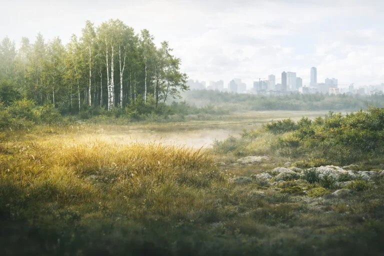 Именно физиономический анализ превращает ботаническую классификацию в материал для художника. Берёзовый лес – это не просто доминирование Betula pendula, это белые вертикали стволов, ажурная светло-зелёная крона, трепещущая листва, создающая подвижную световую игру, и открытое подлесочное пространство. Ковыльная степь – это серебристая горизонталь с мягкой рябью, тёплая охристая палитра в конце лета, скульптурные акценты полыней и катранов. Каждое сообщество имеет свой «портрет», и задача архитектора – научиться его читать.