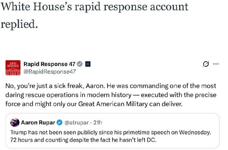 White House snap at ‘SICK FREAK’ reporters questioning Trump 72-hour+ disappearance