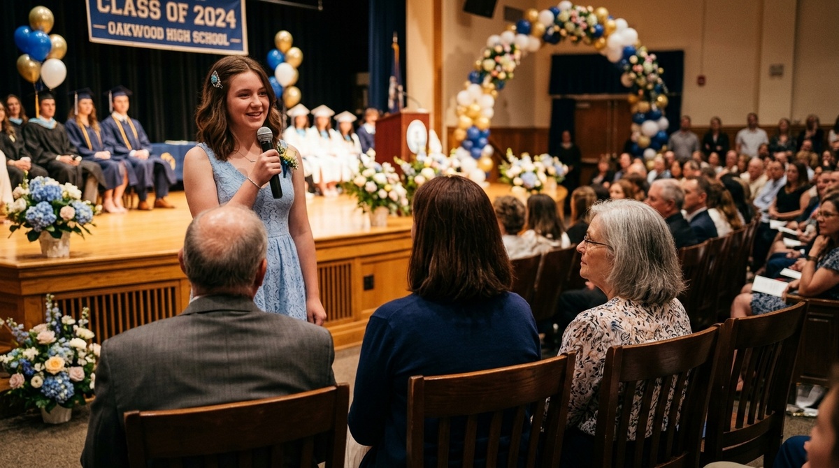 Актовый зал – набит под завязку. Родители, цветы, воздушные шары, самодельные плакаты на стенах. На сцене – стол под скатертью, стопка грамот. Тамара Львовна, классный руководитель, бегала между рядами, поправляя стулья. Невысокая, крепкая, с короткой стрижкой и манерой говорить так, будто каждое слово – приказ. Увидела меня, подошла.