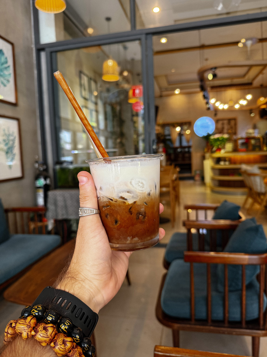 Серьёзно, во Вьетнаме есть две кофейные фишки, которые звучат очень странно: кофе с солью и кофе с яйцом. Первый раз, когда я увидел это в меню – то подумал, ну всё, туристическая замануха. Но любопытство взяло верх. Заказал солёный кофе. Приносят стакан: снизу крепкий чёрный кофе, сверху густая светлая пена. Выглядит вообще нормально. Без намёков на подвох. Делаю глоток… и понимаю, что самое интересное в этой самой пенке. Это действительно вкусно. Прям без скидок на «ну это Азия, тут так принято». Не солёно. Вообще. Скорее сладко-горько, и где-то на фоне есть странная нотка, которую сначала не можешь разобрать. Потом понимаешь – это соль. Но она не выделяется, а просто делает вкус насыщеннее. Дальше пытаешься понять, что это за магия. А всё довольно просто. Соль чуть убирает горечь и усиливает сладость сгущённого молока. В итоге кофе становится мягче. Не таким «в лоб», как обычно бывае