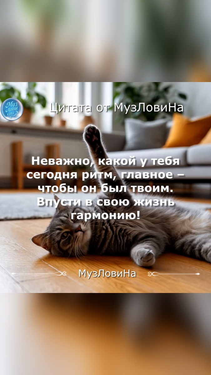 Цитата дня от МузЛовиНа "Неважно, какой у тебя сегодня ритм, главное – чтобы он был твоим. Впусти в свою жизнь гармонию!" Обнимаем ритмично, ваш Канал МузЛовиНа! (https://vk.com/muzlovina) В клипе звучит музыка из песни "Игры в мафию" (Anna_angel_ina) #шутка #магия #человек #звук #сердце #работа #хук #ритм #игрывмафию #котики #цитата #гармония #жизнь #твое #главное #гармония Видео: https://vk.ru/video-234057279_456239159