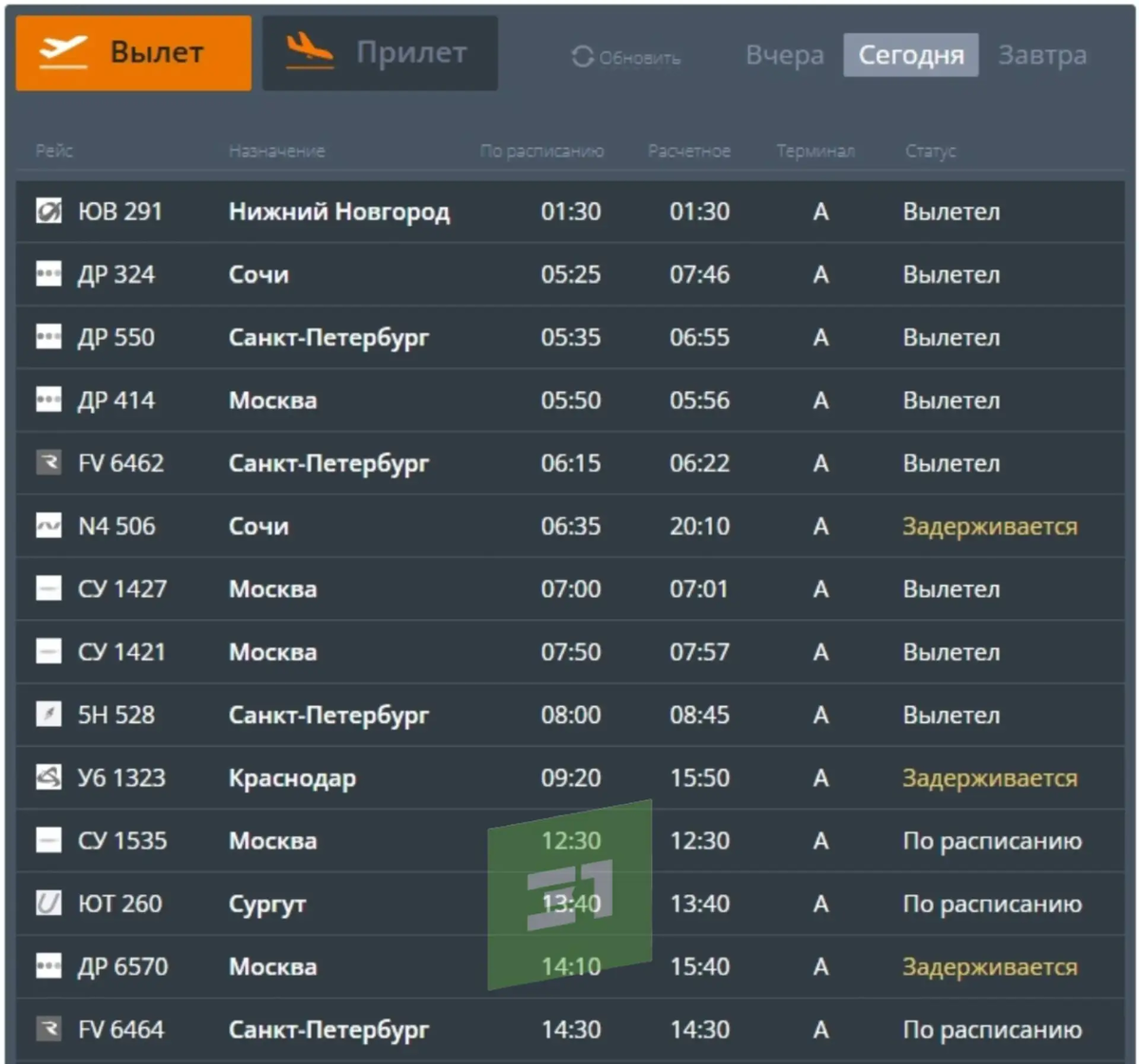 Борт «NordWind» ожидался в 5:35, а прибудет в 19:10. Обратный рейс в Сочи вместо 6:35 вылетит в 20:10.