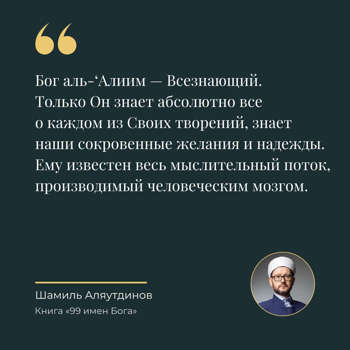 Он знает, когда с нами поступили несправедливо. Он знает, устали ли мы по-настоящему или просто ленимся сделать необходимое. Нас должно волновать то, что Он, Аллах (Бог), знает, а не то, что люди подумают. Наконец, знание того, что Он — аль-‘Алиим, должно вызывать в душе трепет и смирение пред Ним. Трепет из-за безграничности Его знаний. А смирение, потому что независимо от того, сколь многое мы знаем, Аллах знает больше. Это должно помочь осознать, что у знаний нет пределов. Наши знания не должны вызывать у нас высокомерия по отношению к другим, а скорее должны помочь нам понять, сколь многого мы еще не знаем и сколь многому предстоит научиться. ❓ Вспомните, когда вы чувствовали себя одиноким и потерянным. Как вы можете взывать к аль-‘Алииму в таких случаях? 📕«99 имен Бога» 🇷🇺 Наш канал в Max