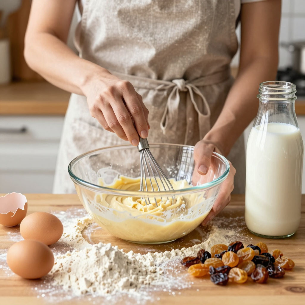 4. Закинули изюм, перемешали ложкой.