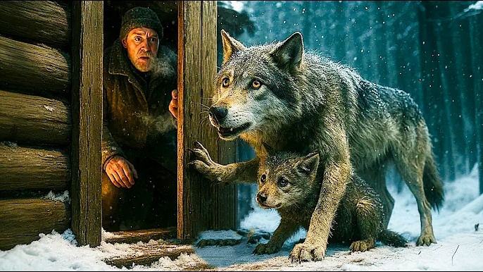 У двери, на снегу, сидела волчица. Худая, с тусклой шерстью, она смотрела на него жёлтыми глазами, полными боли. Рядом с ней, прижавшись к боку, лежал волчонок. Маленький, серый, он жалобно скулил и дрожал.