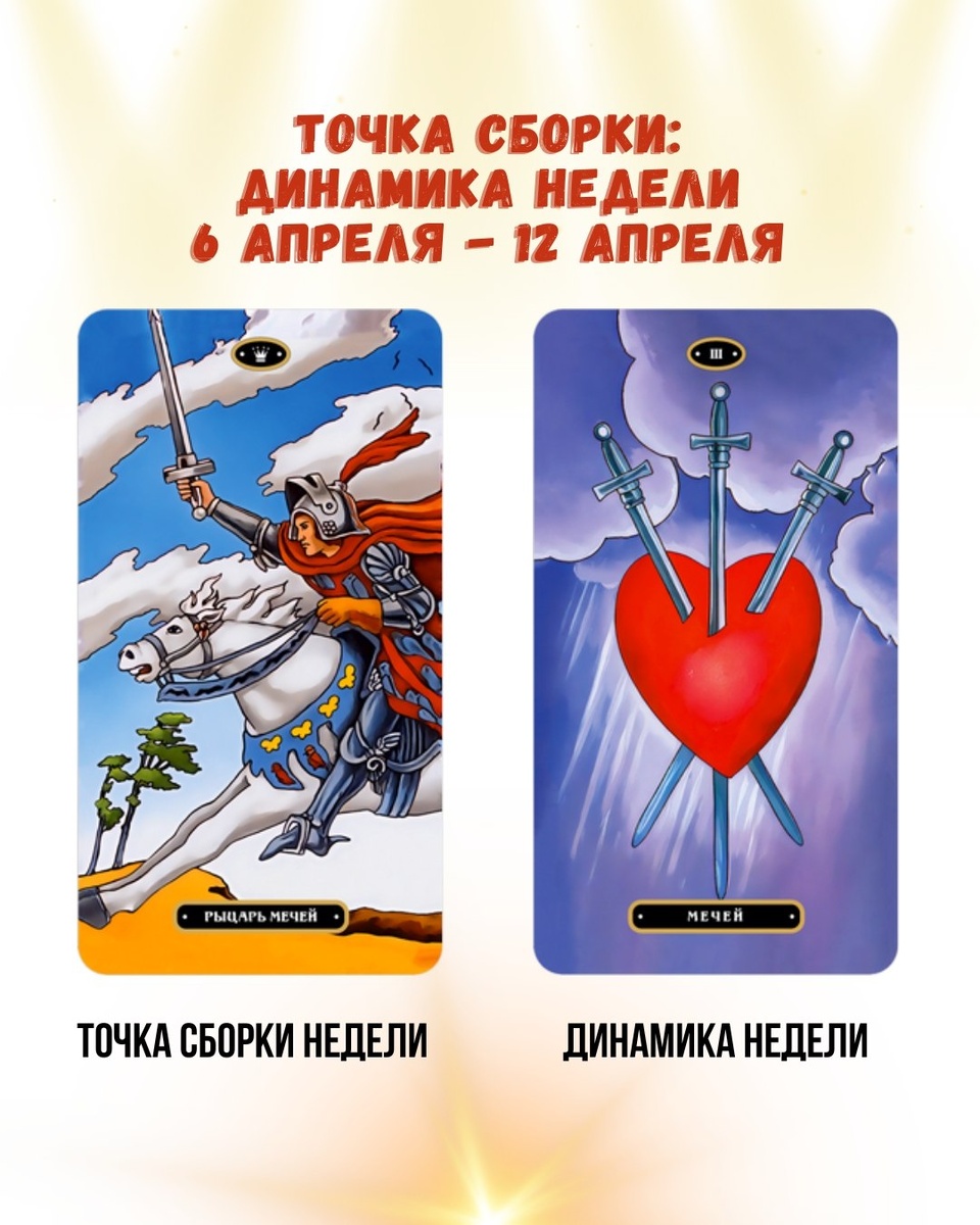 🔘🔘🔘🔘🔘 🔘🔘🔘🔘🔘🔘: ДИНАМИКА НЕДЕЛИ 1⃣ ТОЧКА СБОРКИ НЕДЕЛИ — Рыцарь Мечей🤫 Внутреннее состояние — ускорение. Мысли быстрые, решения резкие, реакции мгновенные. Это неделя, где ты внутри как будто уже «в движении», даже если внешне ещё стоишь на месте. Рыцарь Мечей даёт: ✔желание срочно разобраться, прояснить, выяснить, ✔нетерпение к затяжным процессам, ✔внутренний импульс «идти и делать прямо сейчас», ✔повышенную ментальную активность, ✔резкость в словах и выводах. Ты как будто чувствуешь: «Хватит думать — пора действовать». Но нюанс — скорость выше, чем эмоциональная готовность. Энергетическое состояние недели: Острое, динамичное, направленное вперёд. Много воздуха, много мыслей, мало пауз. 2⃣ ДИНАМИКА НЕДЕЛИ — 3 Мечей💔 А вот внешние события могут задевать за живое. 3 Мечей — это про уколы правды, вскрытие чувств и ситуации, где «приятно уже не будет, зато честно». Неделя может принести: ✔️ неприятные разговоры или прояснения, ✔️ осознания, от которых сначала больно, ✔