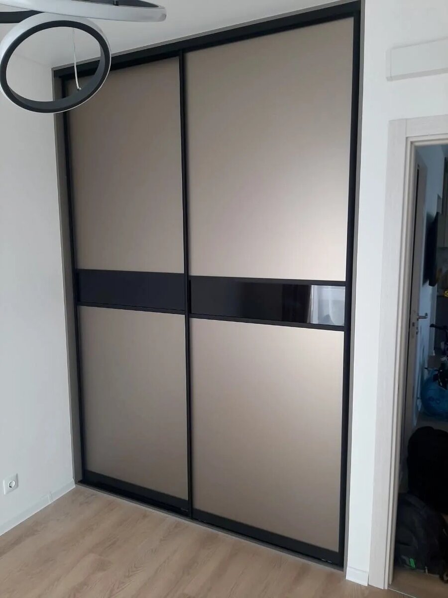 - Конструкция купе позволяет создавать гигантские двери шириной до 1200–1500 мм и высотой до 3200 мм. Нагрузка распределяется по нижней направляющей (в нижнеопорных системах), что позволяет использовать тяжелые вставки из стекла или зеркала без риска перекоса шкафа.