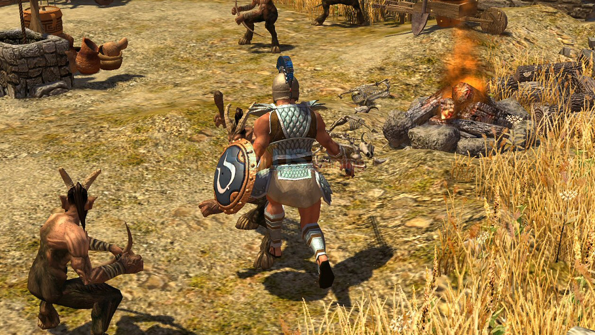 Деревня Хелос. Побережье. Сатиры топчут посевы. Первые монстры, первый опыт, первое оружие с земли.