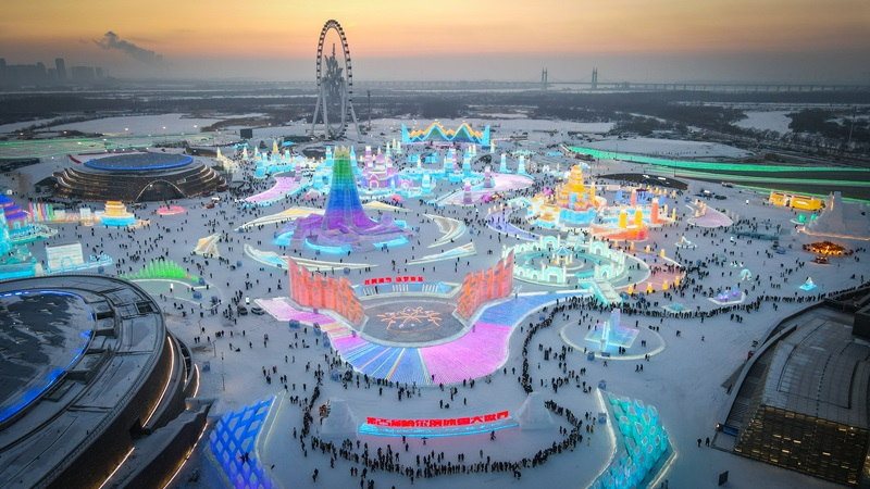 - Фестиваль льда и снега (冰雪大世界, Бинсюэ Дашицзе) — огромный парк ледяных скульптур, который открывается в декабре и работает до февраля. Ночью здесь всё подсвечивается, и это похоже на вход в Нарнию .