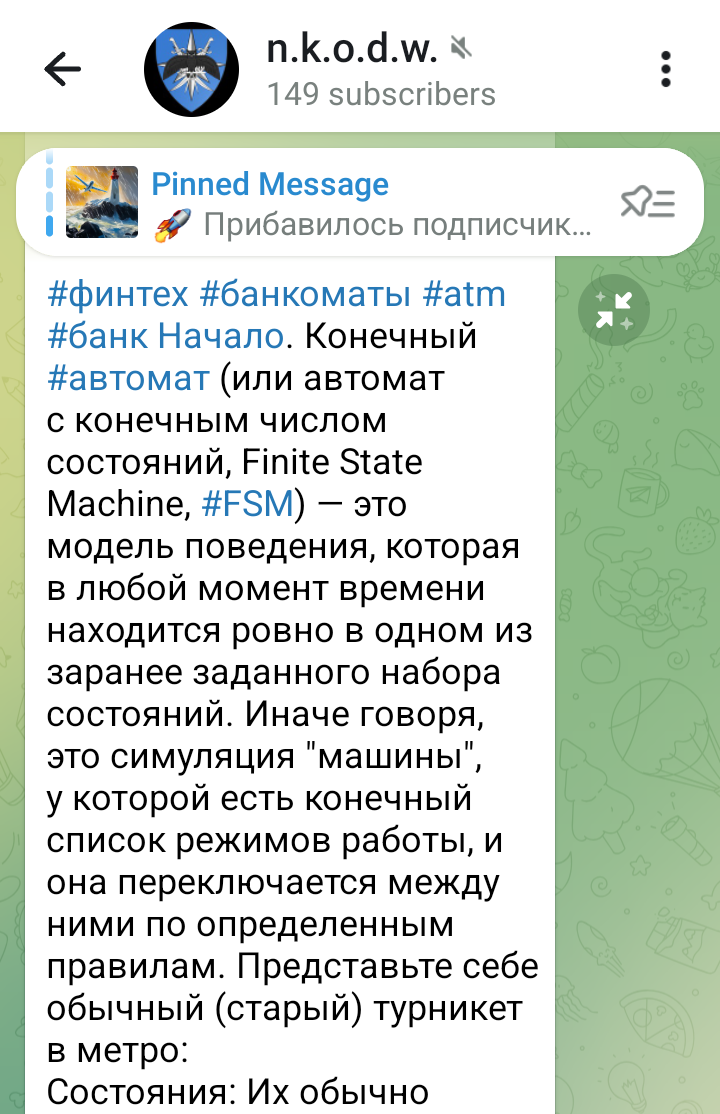 "Конечный автомат (или автомат с конечным числом состояний, Finite State Machine, FSM) — это модель поведения, которая в любой момент времени находится ровно в одном из заранее заданного набора состояний. Иначе говоря, это симуляция "машины", у которой есть конечный список режимов работы, и она переключается между ними по определенным правилам.