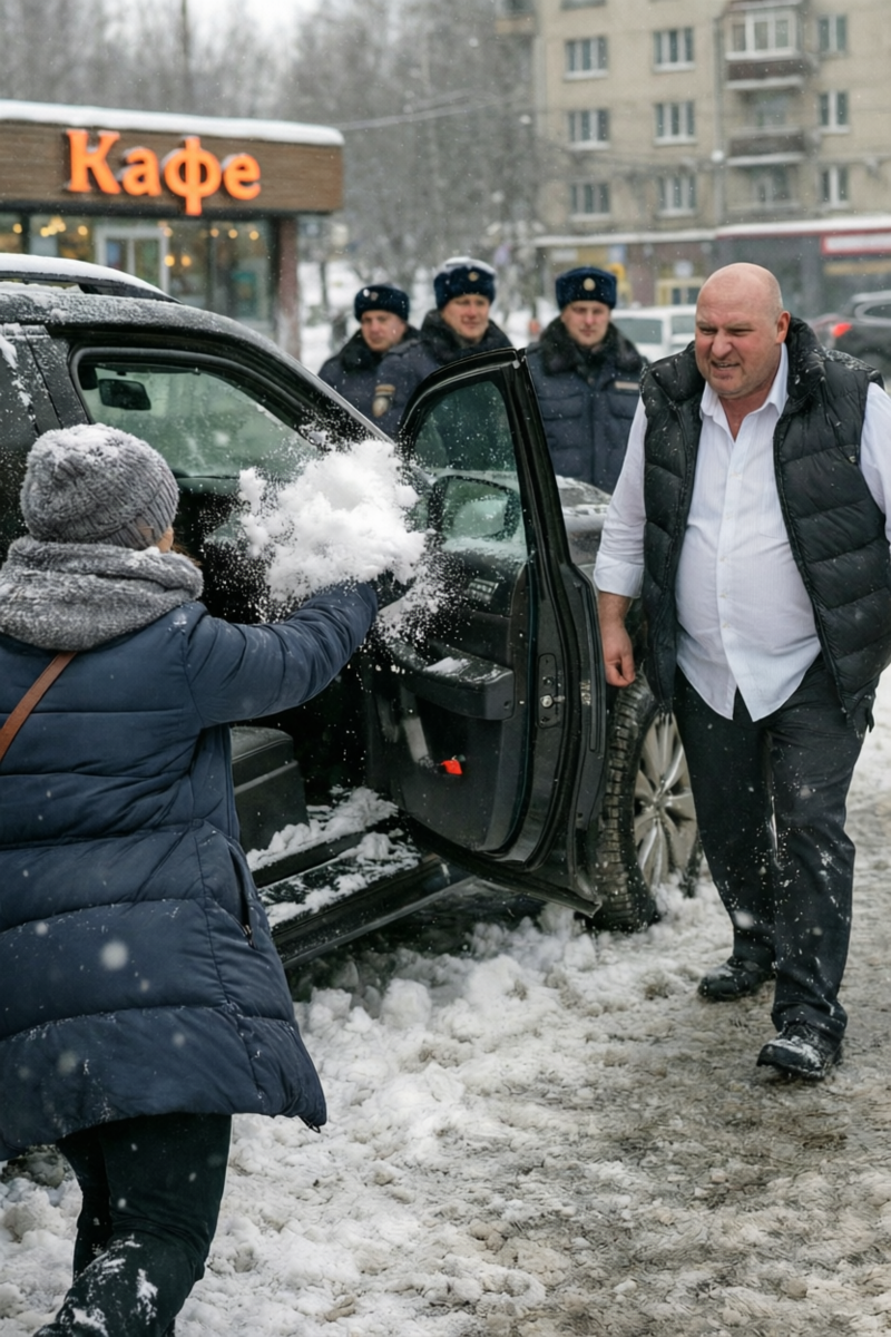 Круг вывел нас обратно к машине. Она стояла там же, где и оставил её хозяин – посреди тротуара, дверь нараспашку, двигатель работает. Я притормозила у сугроба. Зачерпнула снега обеими руками – много, щедро, без экономии, с размахом финального аккорда. И отправила всё это в открытый салон – торжественно, почти церемониально, как человек, который ставит последнюю точку в важном документе.