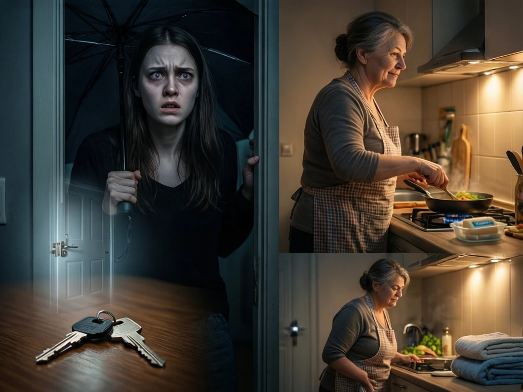 — А, Мариночка. Чего так рано? — свекровь стояла на моей кухне в моём фартуке и жарила котлеты. — У меня ещё полы не домыты в вашей спальне. Я держала в руках зонт-трость. Пять минут назад была готова ударить грабителя. Это оказалось хуже, чем грабитель. * * * Три года мы с Романом снимаем квартиру. Сами. На свои деньги. Его мать, Тамара Петровна, живёт в другом конце города — звонит по воскресеньям, спрашивает про детей, которых пока нет, и объясняет, как правильно жарить мясо. В целом — терпимо. Или так казалось. Примерно две недели назад я стала замечать странное. Сковородка не на той полке. Мыло в ванной другое — не моё, незнакомое. Полотенце перевешено. Сначала думала — показалось, устала на работе. Роман смеялся: «Марин, ну кто к нам залезет? Полотенца переставлять?» Вы бы сразу насторожились или тоже решили, что просто устали? Я медлила. Думала, придумываю. Пока не вернулась с работы раньше — зубы разболелись, отпросилась в обед. * * * На лестничной клетке услышала: за дверью кт