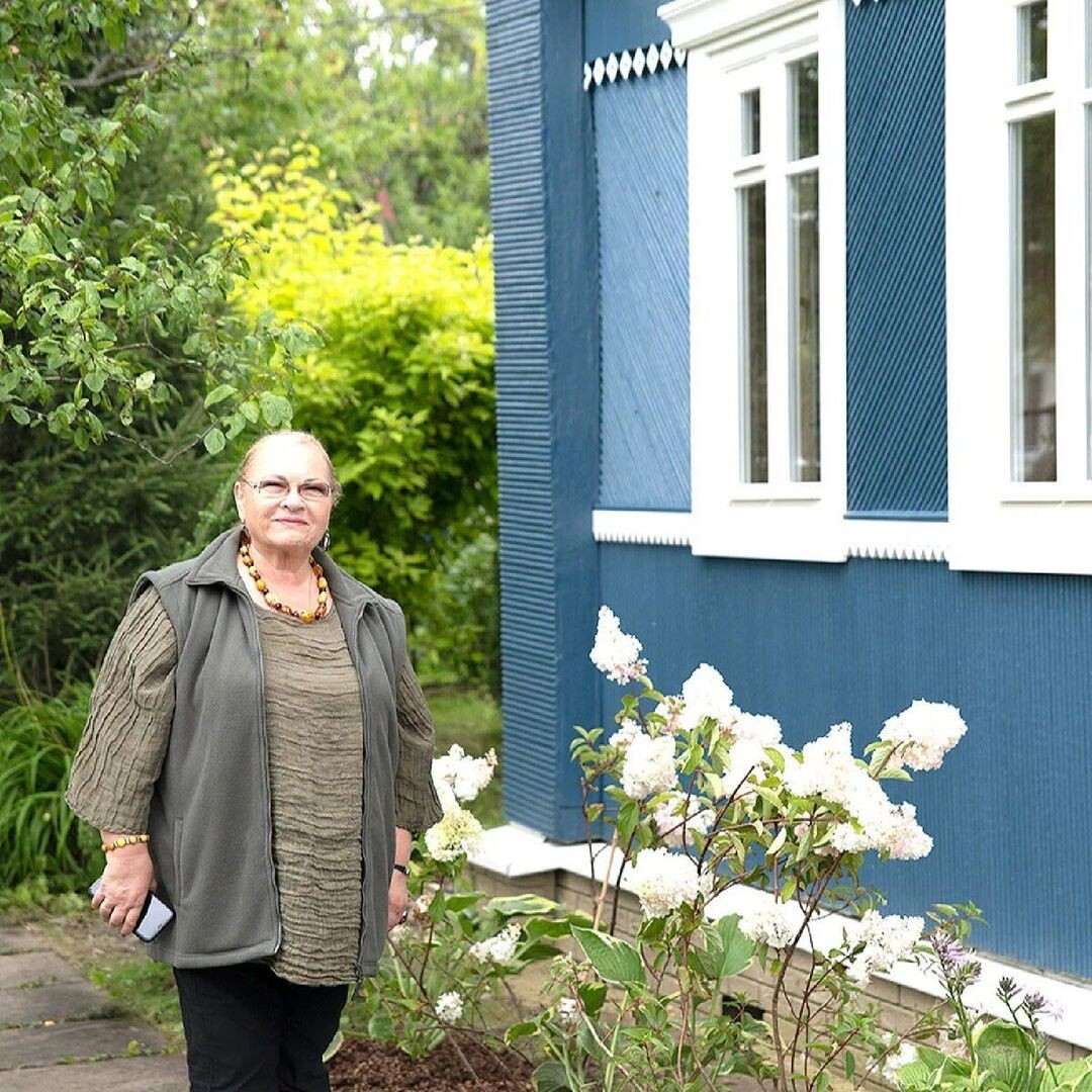 Представьте себе ярко-синие стены, белоснежное деревянное убранство, уютную веранду и вокруг — сплошная зелень, цветы и яблони. Это чудесная дача Нины Усатовой под Санкт-Петербургом. Даче актрисы уже больше тридцати лет. Долгое время из-за плотного графика руки просто не доходили до серьезного обустройства. Но однажды популярное шоу о ремонте взялось за дело и помогло превратить старенький домик в настоящую сказку. Дом полностью обновили: заменили крышу, убрали старые покосившиеся окна, сняли облупившуюся краску и покрыли бревна красивой насыщенной синей краской. Сначала Нина Николаевна немного сомневалась — цвет казался слишком темным. Но когда появились белые окна и изящный белый декор, дом заиграл по-новому, ярко и празднично. Дизайнеры не обошли стороной и участок на шести сотках. Все подчистили, избавились от сорняков, высадили новые деревья и кустарники. Появилось уютное место для отдыха — белоснежная пергола со скамейкой. Рядом — колодец, в котором аккуратно спрятали все комму